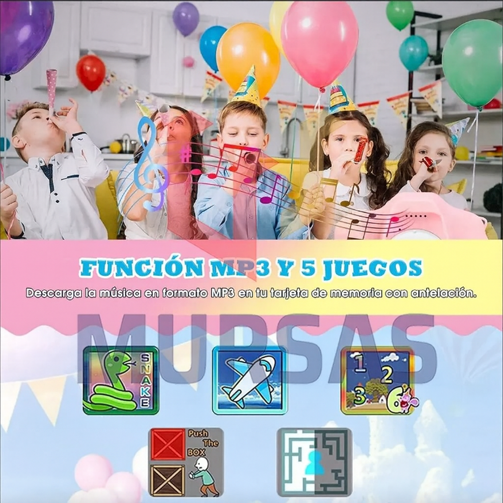 No solo es una cámara: también permite tomar fotos, grabar video, reproducir música y jugar juegos integrados. ¡Un gadget educativo que inspira la creatividad de los niños desde pequeños!