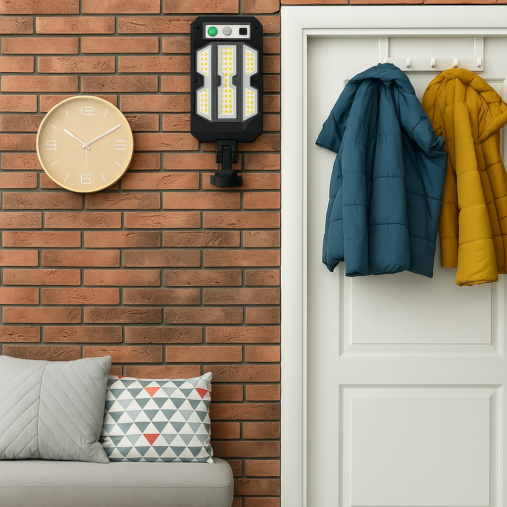La Lámpara Solar SH-802 es la solución perfecta para iluminar tus espacios exteriores de manera eficiente, potente y ecológica. Equipada con 68 LEDs de alta intensidad y sensor de movimiento inteligente, ofrece seguridad y comodidad sin necesidad de cables ni consumo eléctrico.