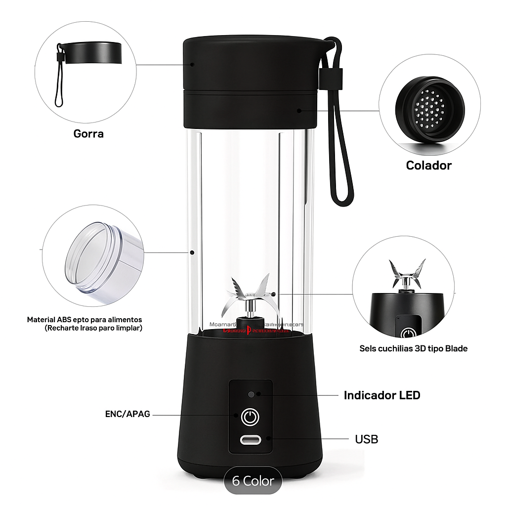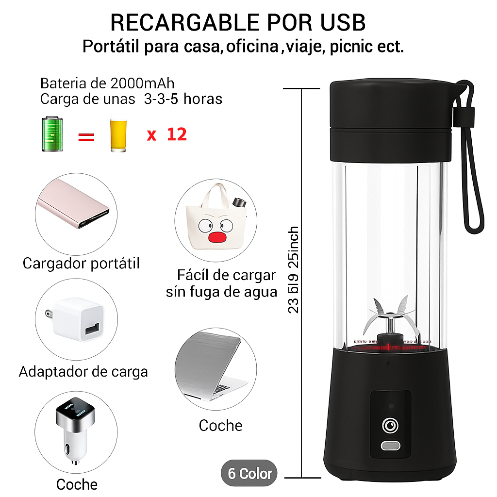 Mini Licuadora Portátil Recargable 380ml – Smoothies en Cualquier Lugar