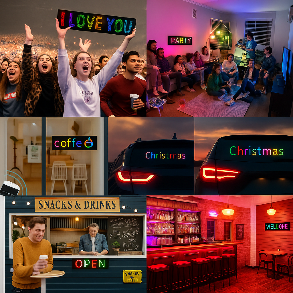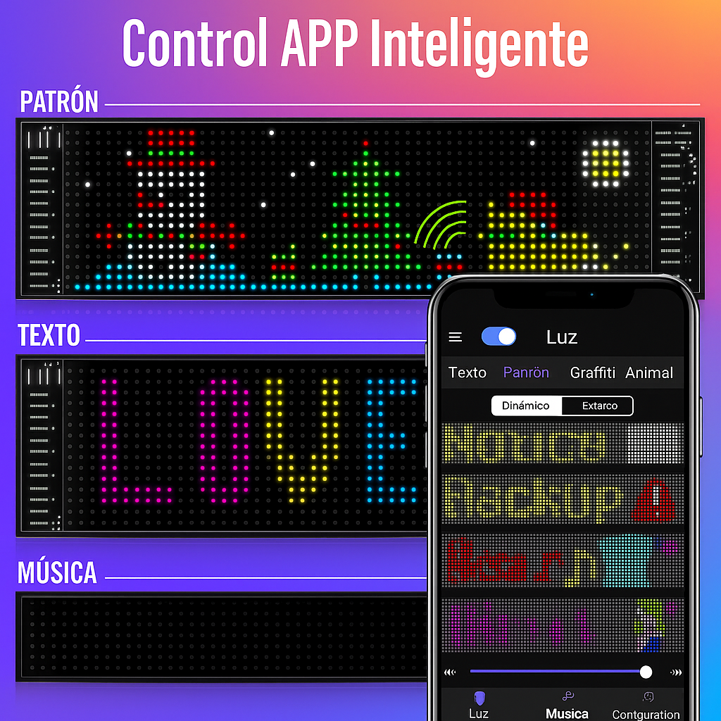• Señalización o decoración dinámica en tu hogar, oficina o vehículo.